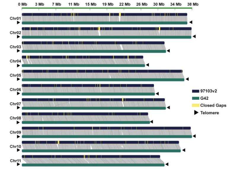 T2T基因組(Telomere-to-Telomere),即端粒至端粒的完整基因組組裝的簡稱,是更完整基因組的代表。T2T基因組主要是通過多種測序平臺、高深度測序,結(jié)合多種軟件方式來獲得具有端粒與著絲粒的的gap-free或gap-less的高質(zhì)量基因組。端粒為真核生物染色體末端的一種特殊結(jié)構(gòu),由 DNA重復(fù)序列和特異結(jié)合蛋白組成的復(fù)合體。高等生物的著絲粒由數(shù)千個高度重復(fù)單元串聯(lián)形成。而這些重復(fù)區(qū)域高度復(fù)雜,是三代測序與組裝中的難點,也是T2T基因組重點攻克對象。T2T基因組的構(gòu)建將進(jìn)一步助力物種基因組中復(fù)雜區(qū)域的解析,尤其是早期難以被破解的“黑色領(lǐng)域”,可為物種的深度研究提供重要的基礎(chǔ)信息。